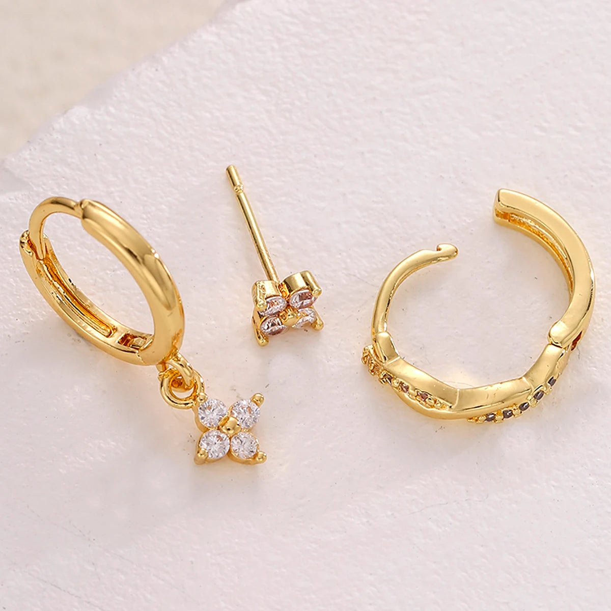 Conjunto de 3 brincos de argola com pingente de flor